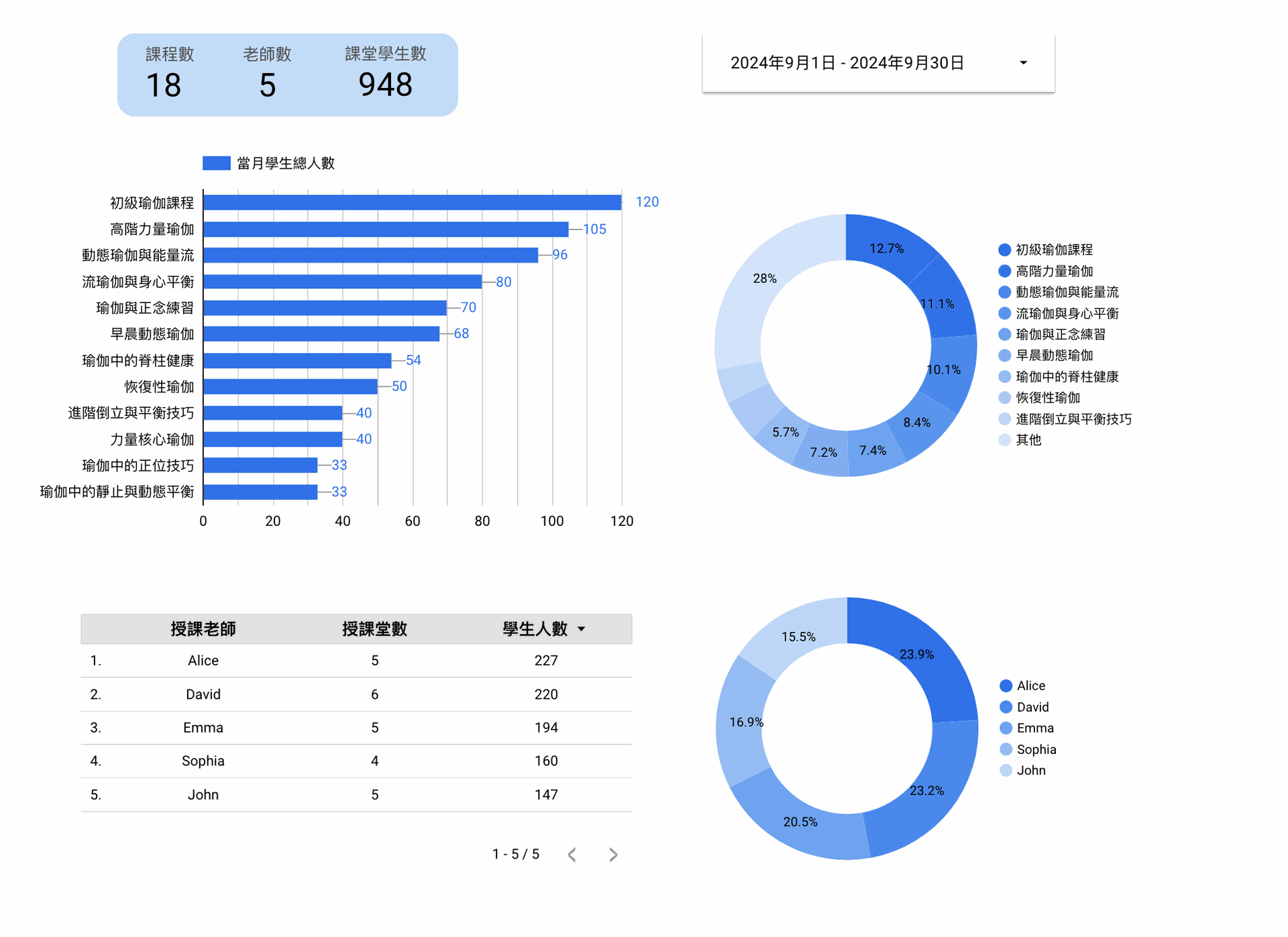 不知道學員喜歡哪些課?哪些時段最熱門?